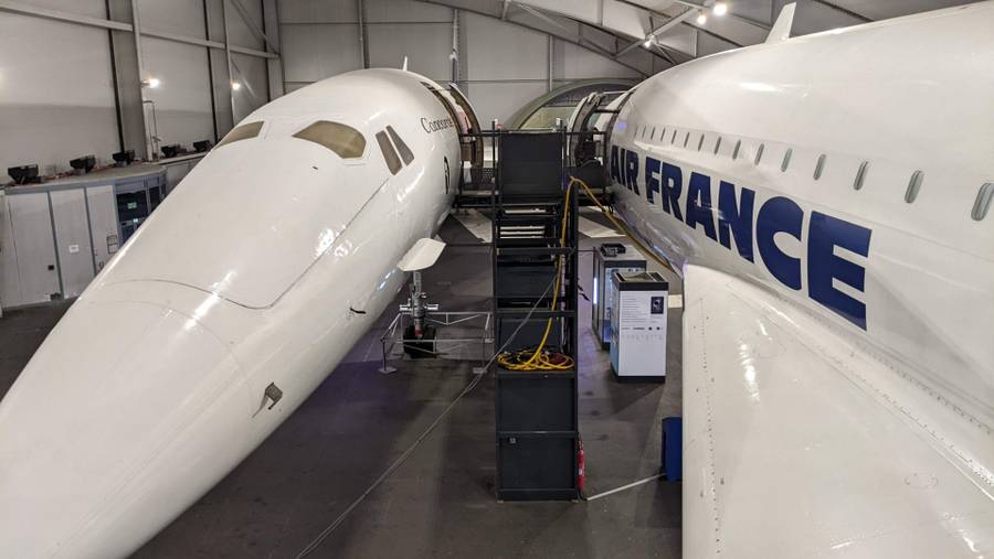 They are: one of the prototypes (F-WTSS) used for testing, and one of Air France’s Concorde fleet (F-BTSD). They have been parked nose by nose, so that you can walk through the flying testbed first and then cross over to the Air France Concorde and walk through her before exiting at the tail. Access to the Concordes is an extra on your museum entry ticket.