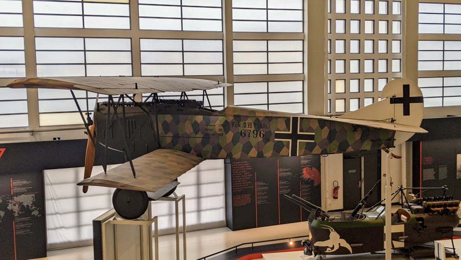 Does that corrugated metal (above) look familiar? Something of a trademark for Junkers aircraft. Most people would recognise it from the WW2 era Junkers 52 transport aircraft. This is a Junkers J-9 designed for ground attack and, as a low wing monoplane, very modern for 1918. Up until this point, aeroplanes had been mostly biplanes, and all were made of wood and canvas.