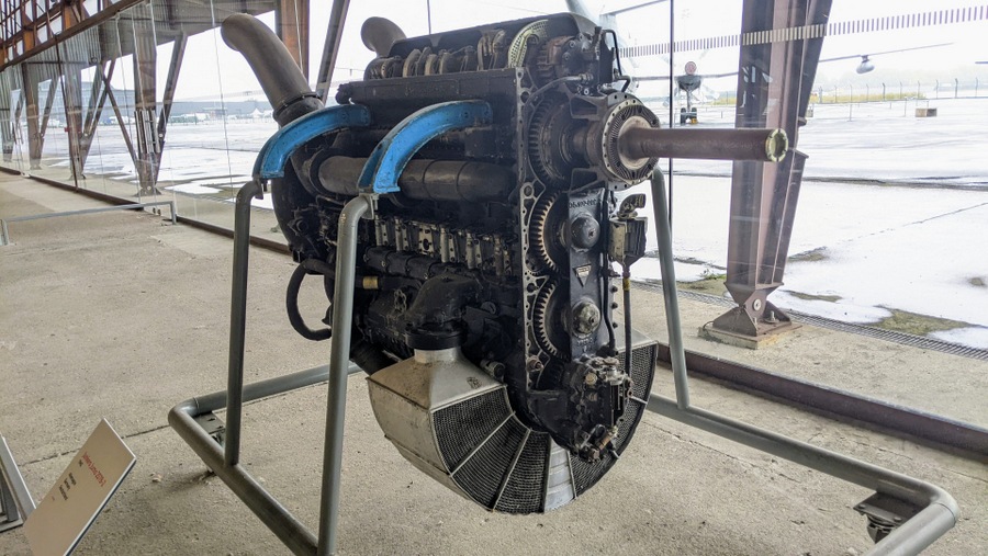 The WW2 Hall also has some interesting aero engines. There’s a fabulous Napier Sabre II, forerunner of the fabulous Sabre III. There’s a Daimler Benz DB603 A2 , and a Junkers Jumo 213, used in the Junkers Ju 188 (successor to the Junkers 88), Focke-Wulf Fw 190D, and the long-nosed Focke-Wulf Ta 152. Most interesting is the super thin Junkers Jumo 207 B2 inline diesel engine. Its weird configuration had six cylinders and 12 opposed pistons (i.e. 2 per cylinder) operating a two-stroke cycle with a supercharger. It could output the same power from sea level to 7,900 m (26,000 ft) and powered Junkers Ju 86 reconnaissance/bomber aircraft up to 15,000 m (49,000 ft).