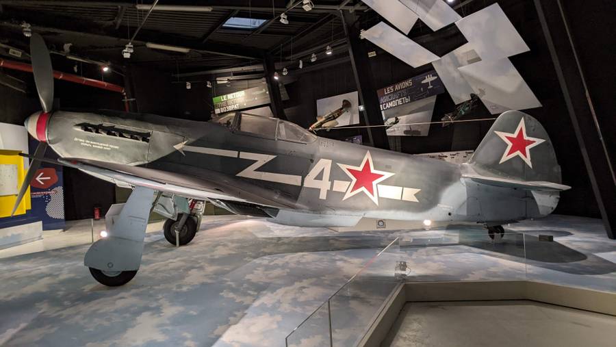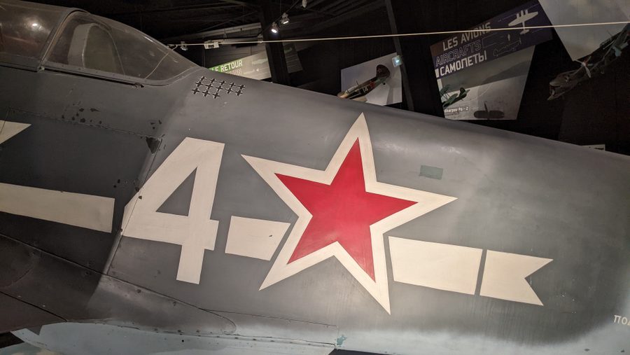 This is one of the best things at the Air & Space Museum. The Normandie Nieman squadrons of Free French pilots flying with the Russians in WW2 are legendary, and as I heard a historian saying recently, went a long way to expunging any guilt, and restoring the national pride of a defeated nation. The statue of two pilots at the front of the museum (feature image) is a tribute to them.