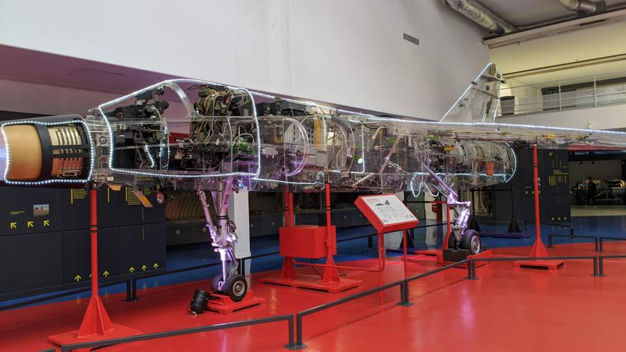 There’s also a really interesting exhibit in here; a transparent Mirage F1 fighter. It’s fascinating to see the engine and cockpit components, and to trace the fuel and electrical connections, but I think the connecting rods and actuators in the wings for the control surfaces are the most interesting aspects. You know what jet engines look like and cockpits look like, but you never really see inside the wings!