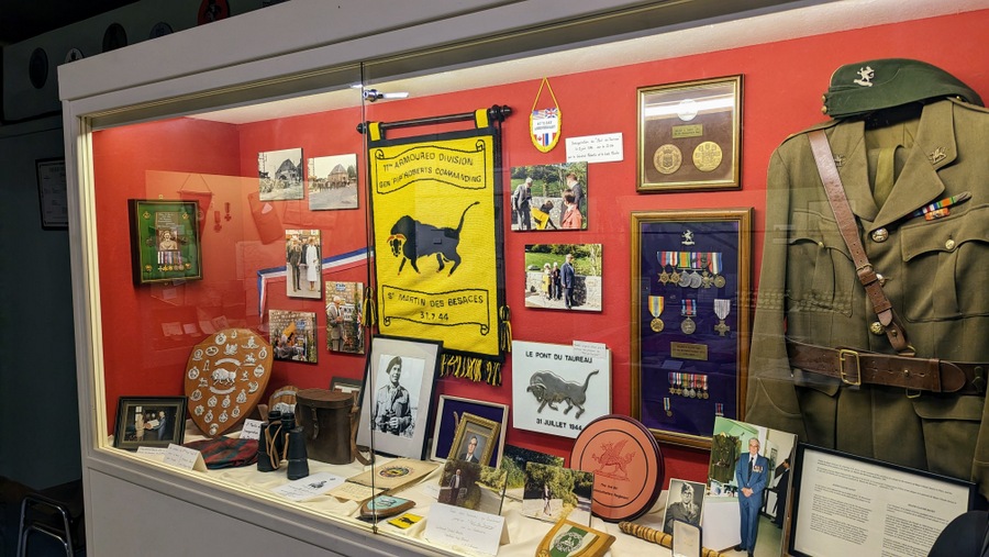 The museum, which celebrates its 30th anniversary this year (2004), is located on the main street of Saint-Martin-des-Besaces in the commune of Souleuvre en Bocage. Enthusiastically curated by Billy Lebond, the museum focuses on the British who fought their way through the bocage during Operation Bluecoat in late July 1944, and liberated Saint-Martin-des-Besaces, at some cost to themselves.