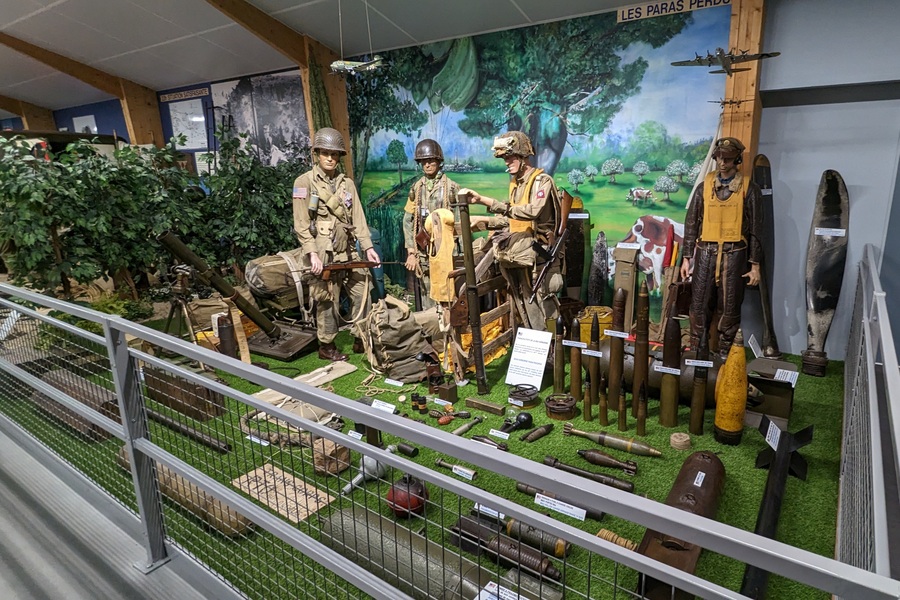 It’s not a particularly large museum (1400m²) but it is well laid out and has some interesting artefacts, documents and photos. It’s location, halfway up the Les Moulins draw* (the middle of the three draws at Omaha, it leads up to Saint Laurent) also makes it a popular stopping off point for visitors who drive past on the way to or from the Vierville draw along the beach road.