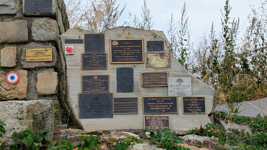 Two hundred metres along the road, there is a collection of individual memorial stones to soldiers who died nearby.