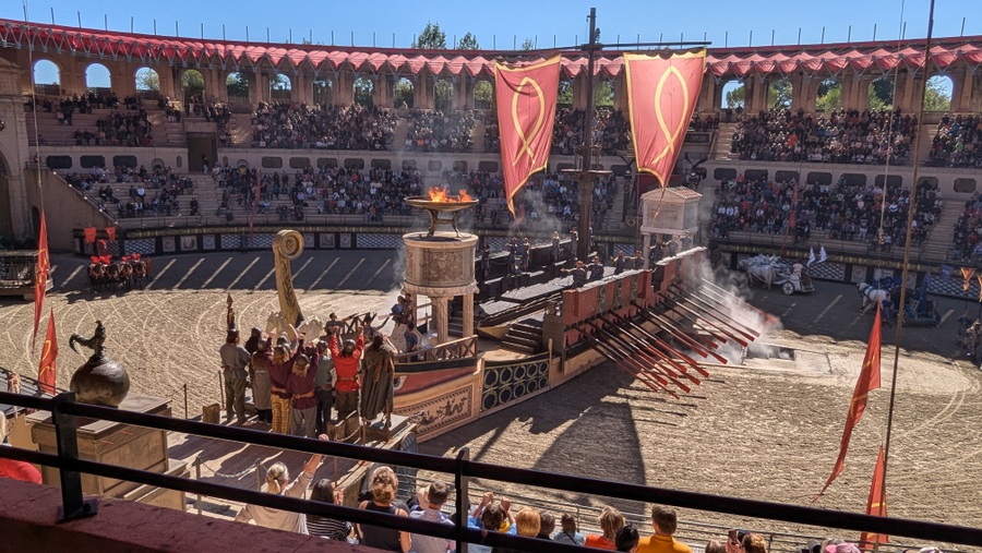 Full scale Roman games in a 7,000-seat Roman coliseum. Depending where you sit, you are supporting either the Romans or the poor under-trod Gauls, with lots of chanting, booing, and thumb-waving. Naturally the Romans play dirty, forcing their Gallic prisoners to fight. Keep an eye on the centrepiece, which (spoiler alert) transforms into a full size Roman galley before your eyes! It’s all excellent fun, and, as most things ‘Puy-du-Fou’, the costumes, and props are spectacular!