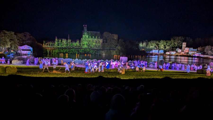 Now, La Cinéscénie plays out seven centuries of Vendée history on its 23-hectare stage below the Château with 2,500 actors, performers, dancers, and volunteers, plus hundreds of animals, 3D mapped projections, autonomous drones, and plenty of pyrotechnics, in front of a massive 13,000 seat open-air auditorium.