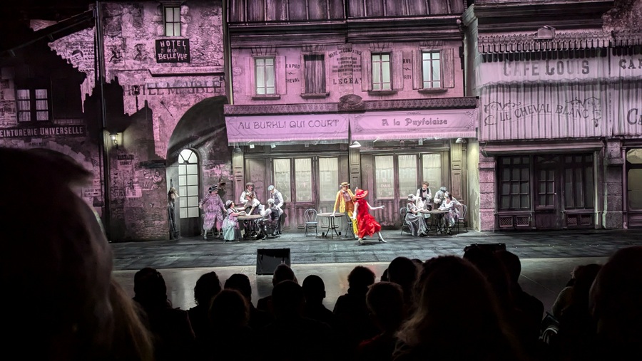 A gripping display of horsemanship, pageantry, and battle in a medieval castle setting during the 100 Years War. The plot is that Joan of Arc has taken the best knights to fight the English, leaving a young girl to defend the castle… with a magic lance. Of course, the dastardly English turn up disguised as innocent monks and launch a surprise assault. The set itself (spoiler alert) is a major part of the show. The outer walls of the castle disappear to reveal the inner village and huge castle keep… which also moves! There’s plenty of fighting, flames, and FX before, inevitably, the power of the magic lance overcomes those duplicitous, pernicious, twisted, crazed, evil… (too much?) Anglais! 😉