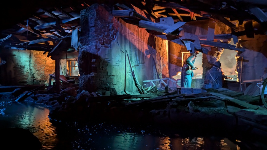 A trail through the WW1 trenches of Verdun, so it is feels cramped and is continuously loud and noisy with explosions and the sounds and vibrations of warfare. It’s also very dark. As with the other immersives, the characters you encounter are a mix of animatronics (eg a wounded soldier moving under the sheet on a stretcher) and live actors.