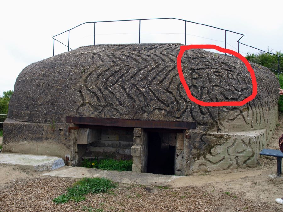Something to look out for; somebody, maybe among the Todt Organisation workers charged with creating the camouflage pattern in the blockhouse concrete, disguised two names, written backwards, in the pattern: Robert and Maria.